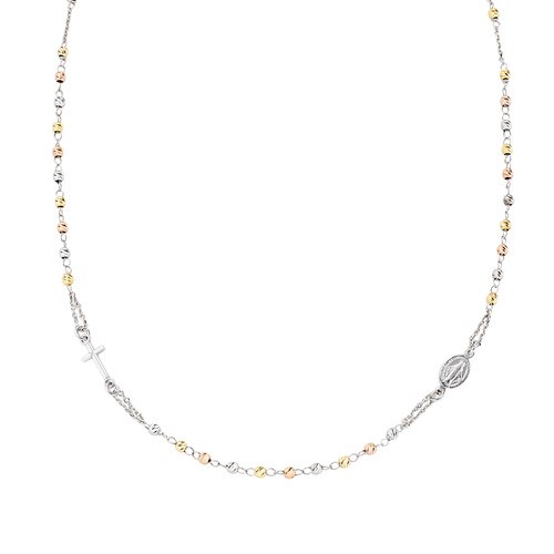 Collana donna amen, CROBBRGD3, collezione rosari, in argento 925 rodiato, argento 925 rosato, argento 925 dorato, lunghezza 52cm regolabile