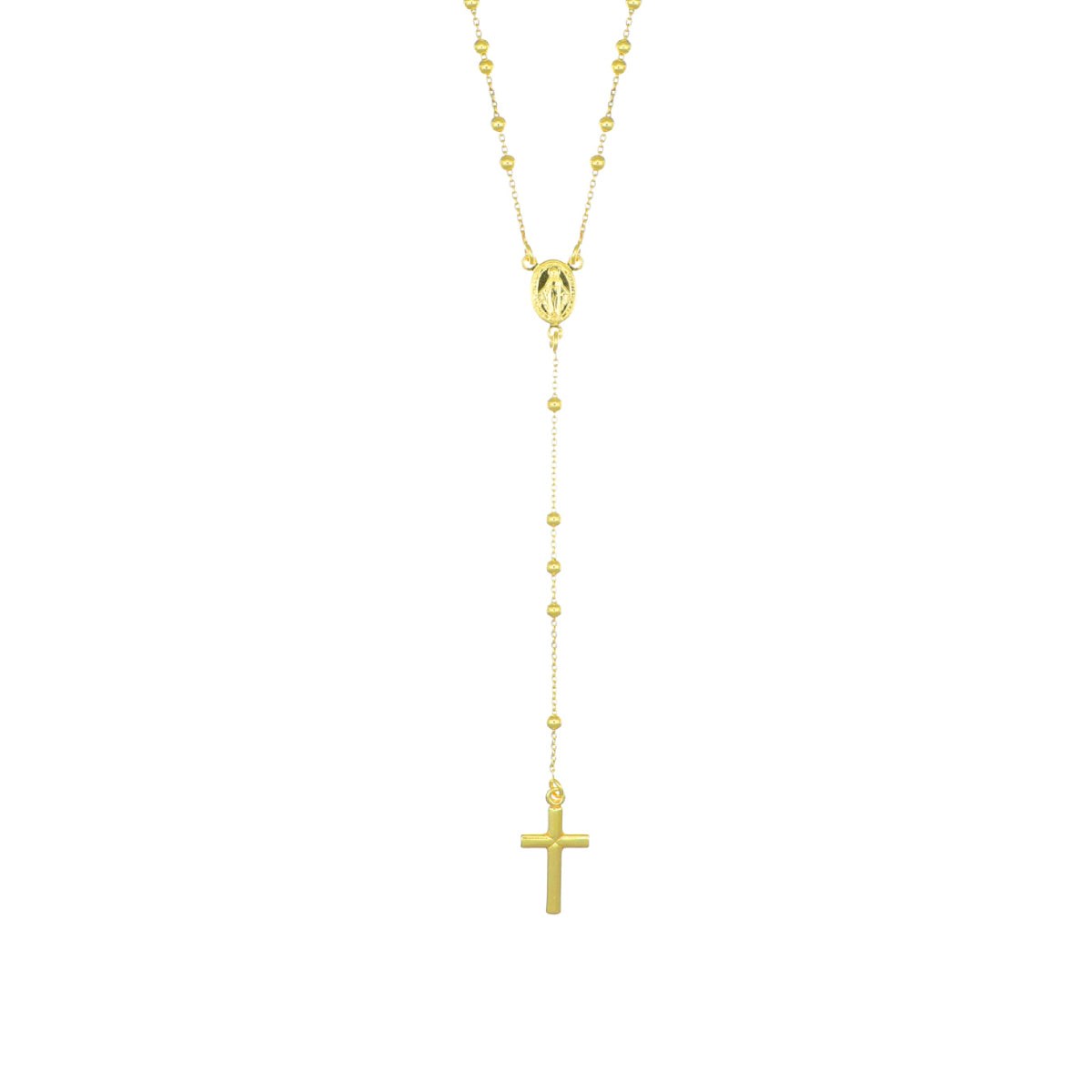 Collana unisex amen, CRO20G, collezione rosarium, rosario classico in argento 925 dorato con grani da 2 mm di diametro, croce e medaglietta Madonna Miracolosa.