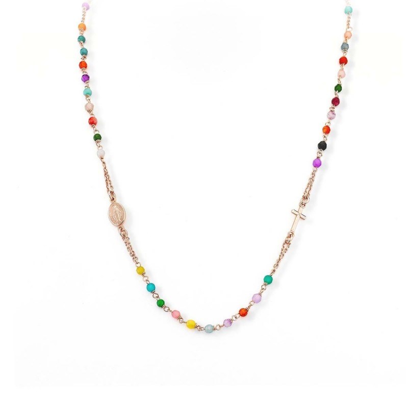 Collana donna amen, brobn3p, collezione rosarium , novità , in ag925 rose e pietre colorate