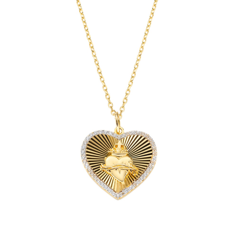 Collana donna amen, CLSCCUG, collezione sacro, in argento 925 dorato, con zirconi bianchi, lunghezza 40cm+5cm di estensione