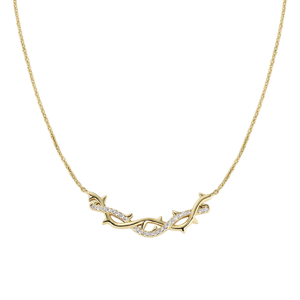 Due tralci di spine si intrecciano in omaggio alla Passione di Gesù, in un gioiello da indossare per esprimere l’aspetto più profondo della Fede.
