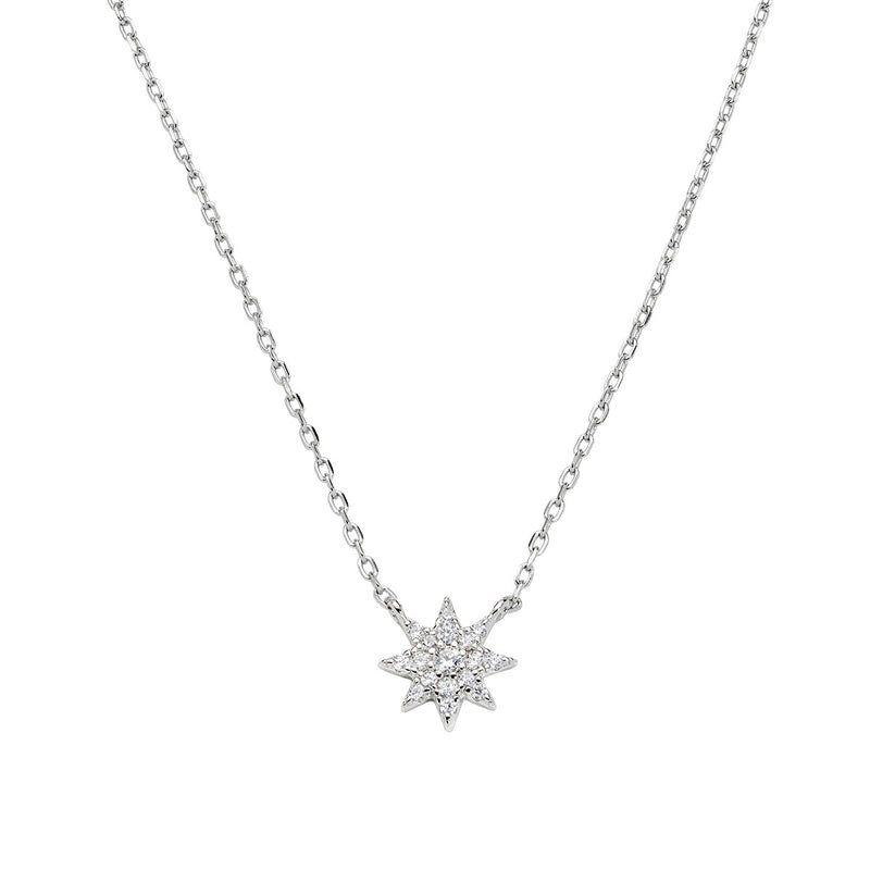 Collana donna amen, CLSOPBBZ3, collezione stelle, in argento 925 rodiato con piccolo charm da 8 mm a forma di stella a 8 punte e pavé di zirconi bianchi.