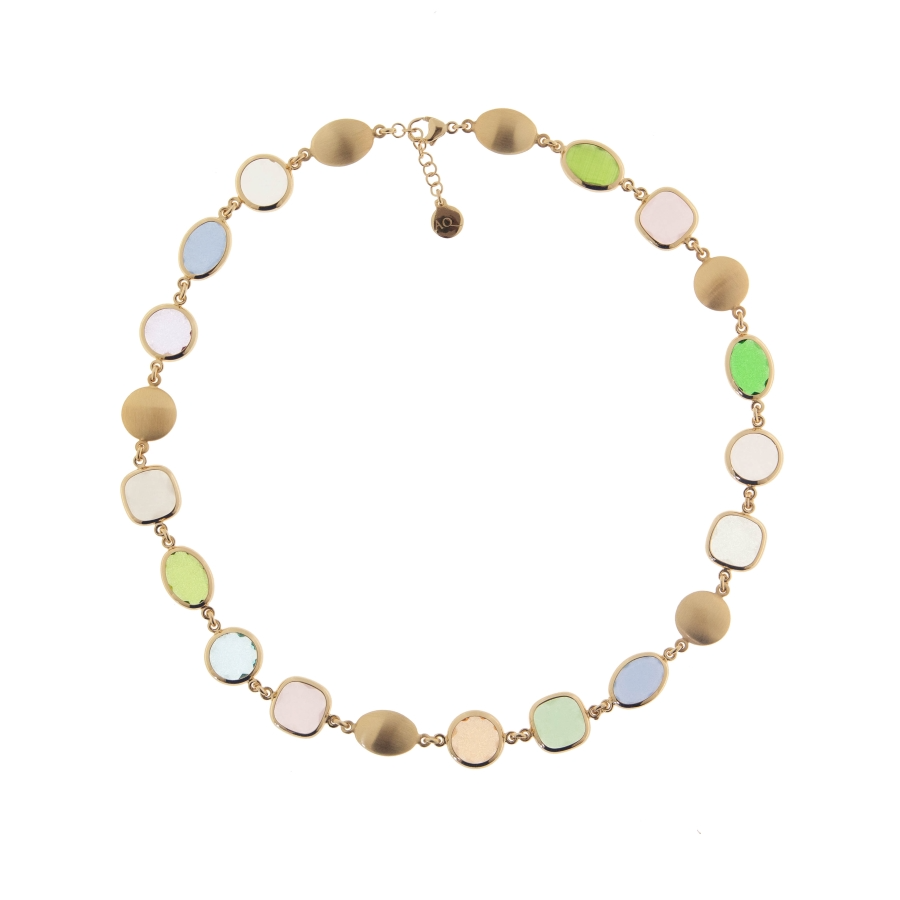 Collana donna aquaforte, H4184951, collezione coriandoli, in argento 925 placcato in oro 23kt e pietre