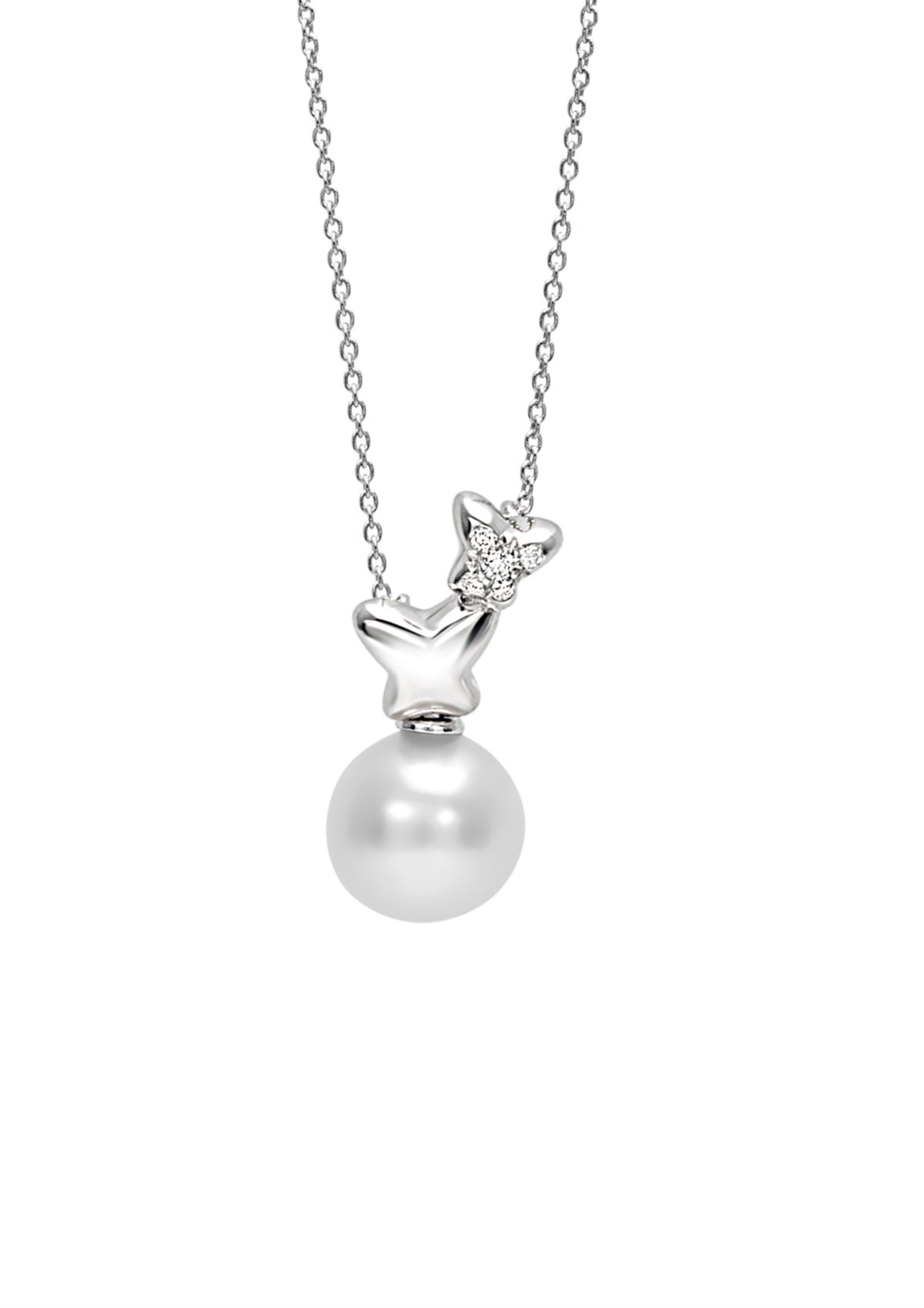 Oro bianco, perle fresh water mm 7/7½ e diamanti.ct.