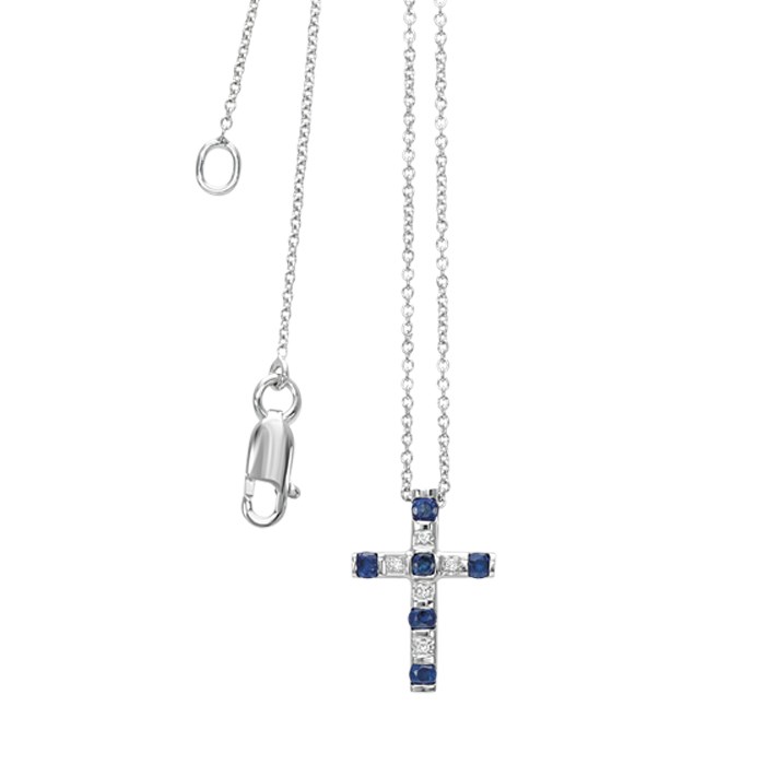 Collana donna bliss, 20057556, collezione cabaret, novità; in oro bianco con diamanti e zaffiri 0, 015 ct, lunghezza 42 cm.