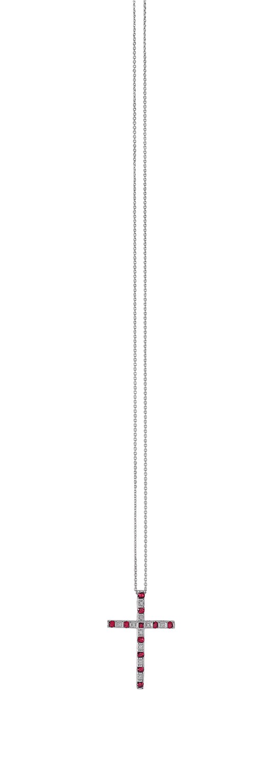 Collana donna bliss, 20044123, collezione cabaret, in oro bianco 18kt con diamanti 0.03ct colore h e rubini 0.42ct