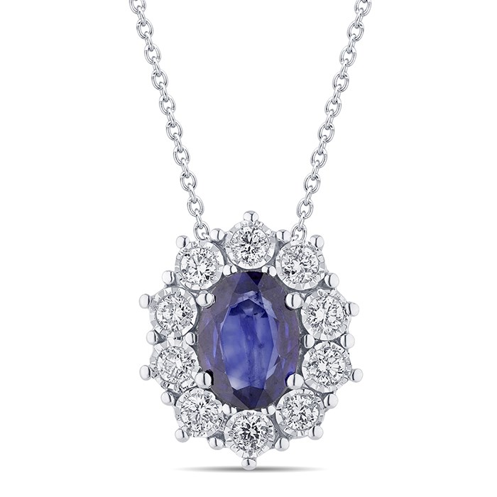 Collana donna bliss gioielli, 20111625, collezione masterbliss, in oro bianco 18kt Tipo Pietra: Diamante/zaffiro Taglio pietra: Ovale Caratura: 0.3 Ct.pietre fini: 0.95 Colore Diamante: G Purezza: SI Lunghezza cm: 42.0