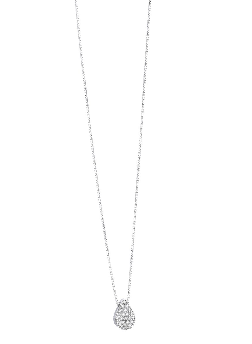 Collana donna bliss, 20039371, collezione goccia, in oro bianco 18kt e diamanti 0.10ct colore h