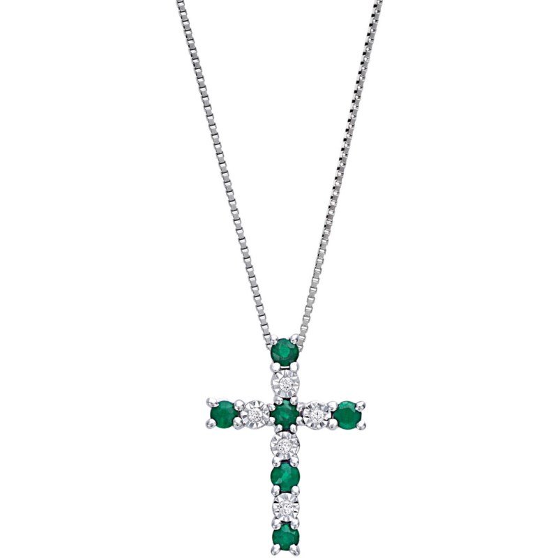 Collana donna Bliss, 20073983, collezione jasmine, novità. In oro bianco con diamanti carati 0, 03 e smeraldi carati 0, 30.
