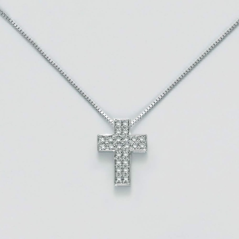 Collana donna bliss, 20092714, collezione le croci, in oro bianco 18kt e diamanti 0.12ct colore gh