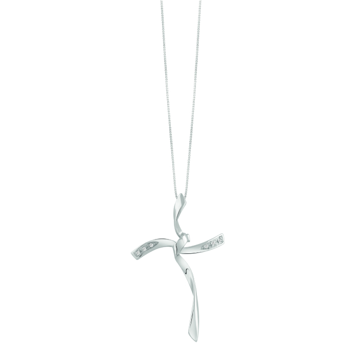 Collana donna bliss, 20101350, collezione le croci, in oro bianco 18kt e diamanti 0.03ct colore gh