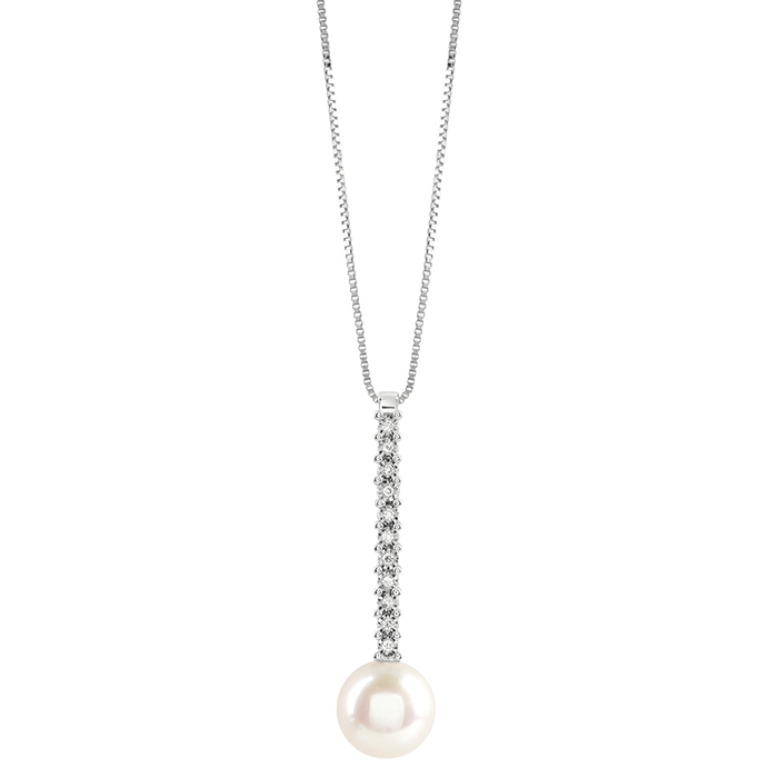 Collana donna bliss, 20085162, collezione perle, in oro bianco 18kt con diamanti e perla