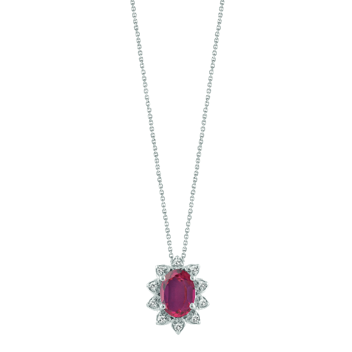 Collana donna bliss, 20101403, collezione regal, in oro bianco 18kt con diamanti 0.05ct colore gh e rubino 0.95ct