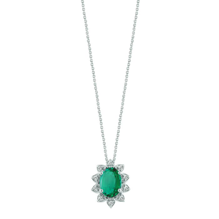 Collana donna bliss, 20101404, collezione regal, in oro bianco 18kt con diamanti 0.05ct colore gh e smeraldo 0.75ct