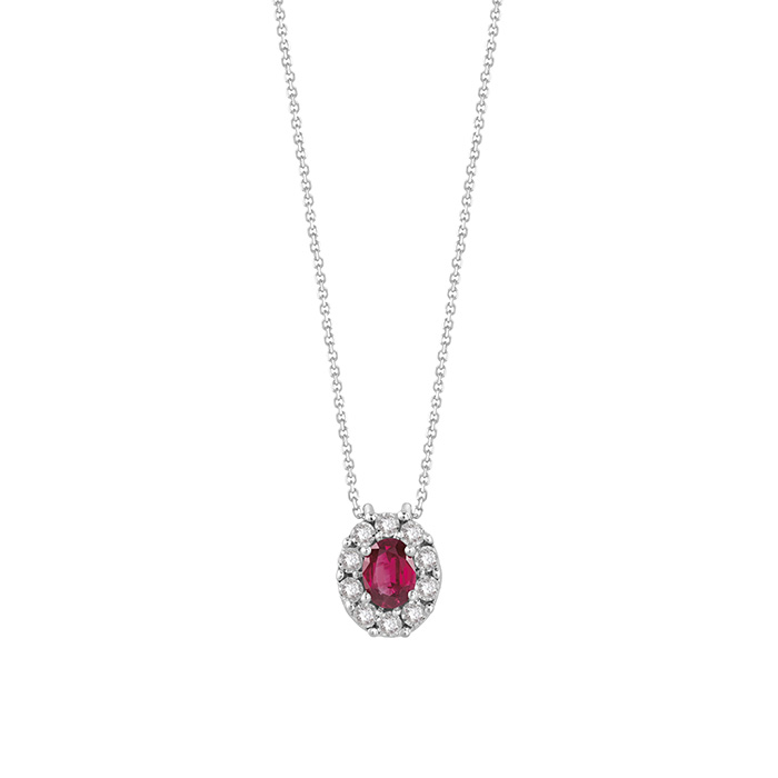 Collana donna bliss, 20102582, collezione regal, in oro bianco 18kt con rubino 0, 22ct e diamanti 0, 05ct, colore gh