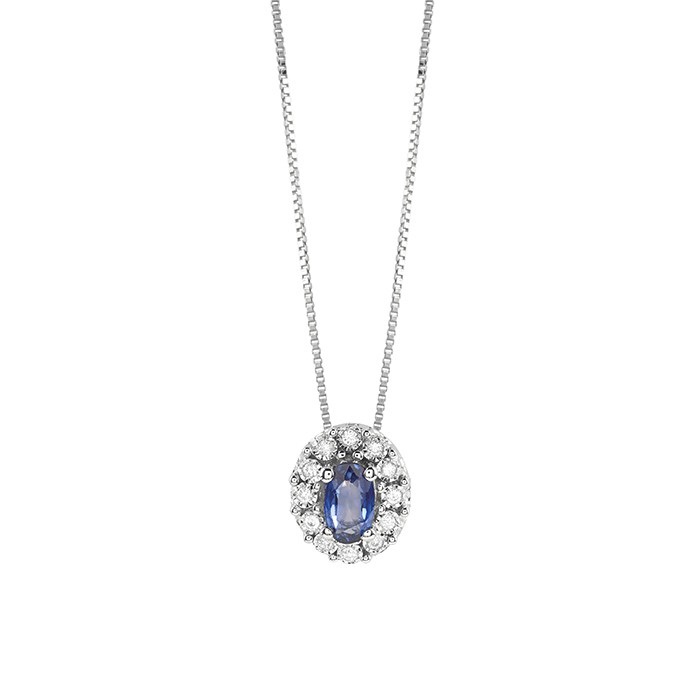 Collana donna bliss, 20094851, collezione regal, in oro bianco 18kt con diamanti 0, 04ct, colore gh e zaffiri 0, 35ct