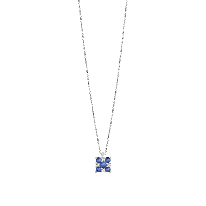 Collana donna bliss, 20104715, collezione rugiada colors, in oro bianco 18kt Tipo Pietra: Diamante/zaffiro Taglio pietra: Rotondo Caratura: 0.03 Ct.pietre fini: 0.32 Colore Diamante: G Purezza: SI