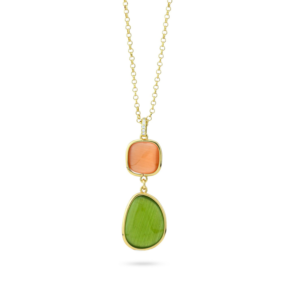 Collana donna boccadamo, XGR716DV, collezione crisette, in bronzo placcato oro giallo, lunga a doppio indosso, con pendente quadrato e irregolare di colore purple e verde, sorretto da una contromaglia di zirconi, lunghezza 80cm