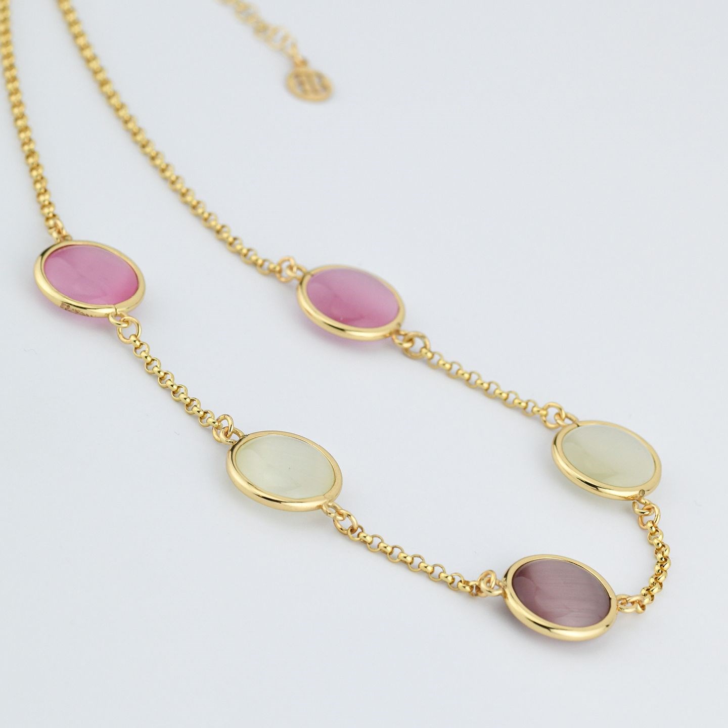 Collana donna boccadamo, XGR740DM, collezione crisette, in bronzo placcata oro giallo con cristalli rosa chiaro, madreperla e viola scuro. Misure: lunghezza cm 42, 5, estendibile fino a cm 48 Dimensione: cristalli cm 1, 5