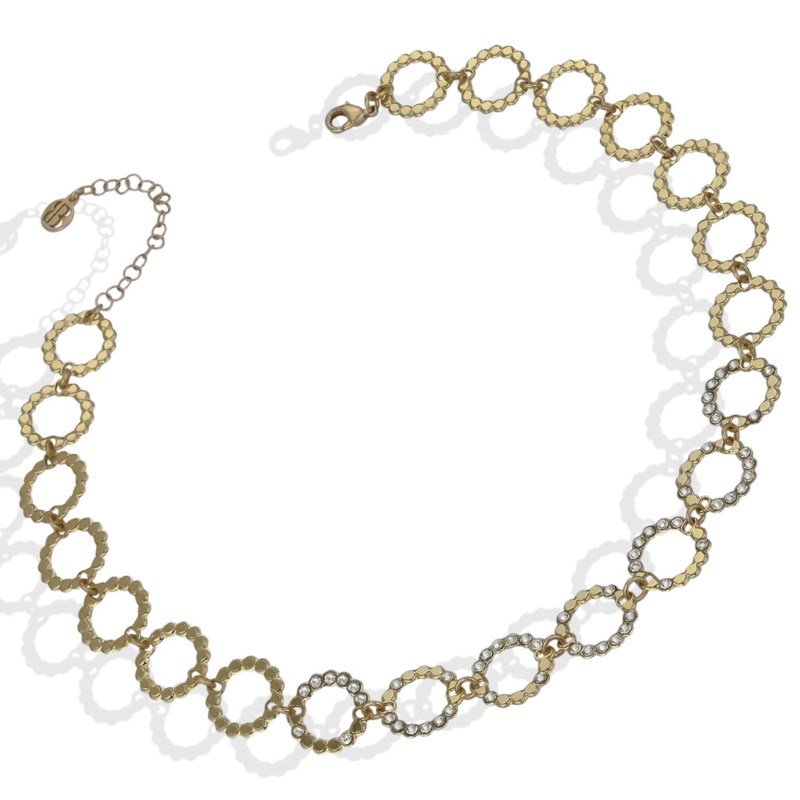 Collana donna boccadamo, XGR630D, collezione magic circle, in bronzo placcato oro giallo con cristalli, lunghezza 44, 5cm regolabile