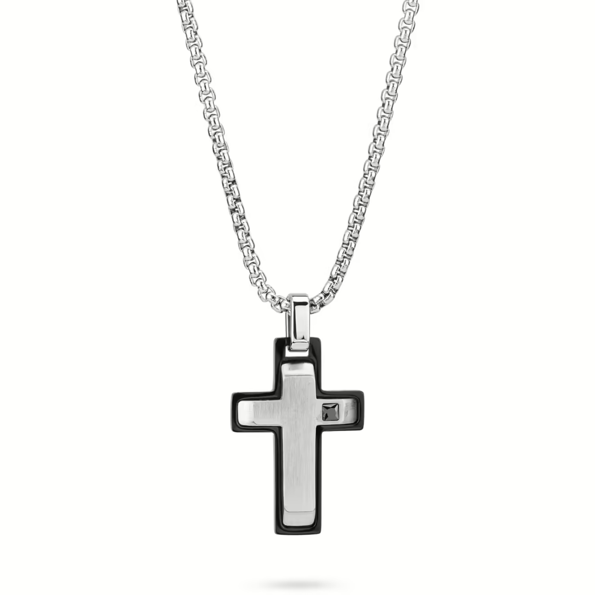 Collana uomo boccadamo, AGR251N, collezione man, in acciaio e zirconi, lunghezza regolabile fino a 50cm