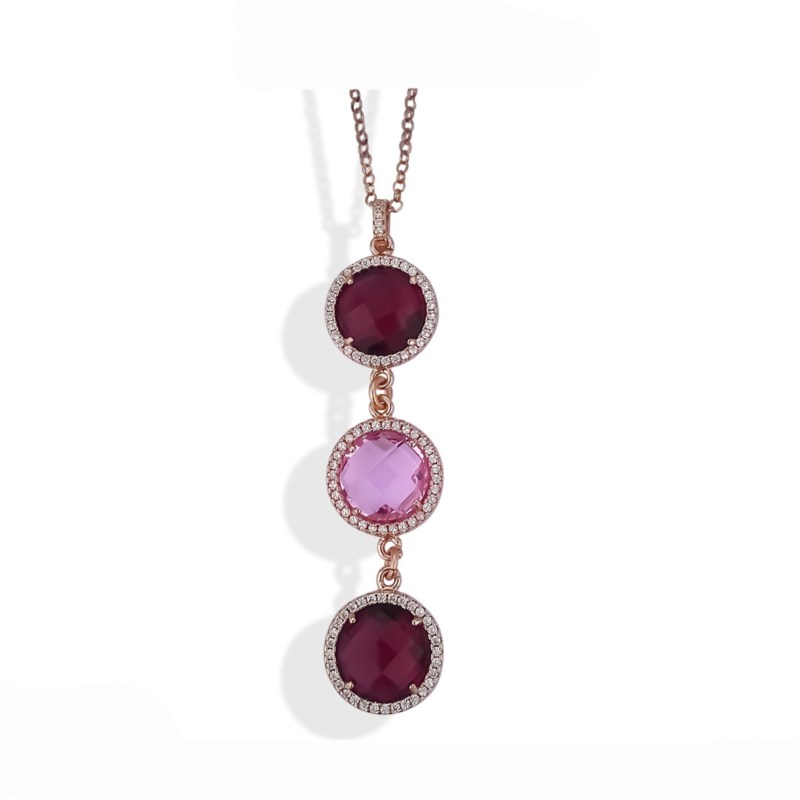 Collana donna boccadamo, XGR653RS, collezione sharada, in bronzo placcato oro rosa con cristalli e zirconi, lunghezza 44, 5cm regolabile