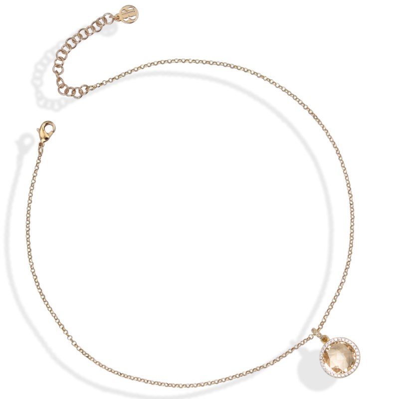 Collana donna boccadamo, XGR260DC, collezione sharada, in bronzo placcato oro giallo con cristalli e zirconi, lunghezza 39cm estendibile fino a 44, 5cm