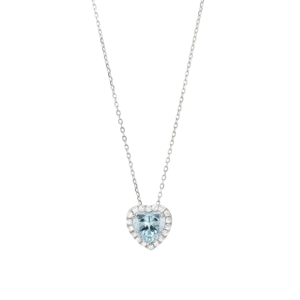 Collana donna boccadamo, Gr861a, collezione sophie, in argento 925 rodiato, con cristallo acqua marina e zirconi bianchi, lunghezza 39cm + 4cm di estensione