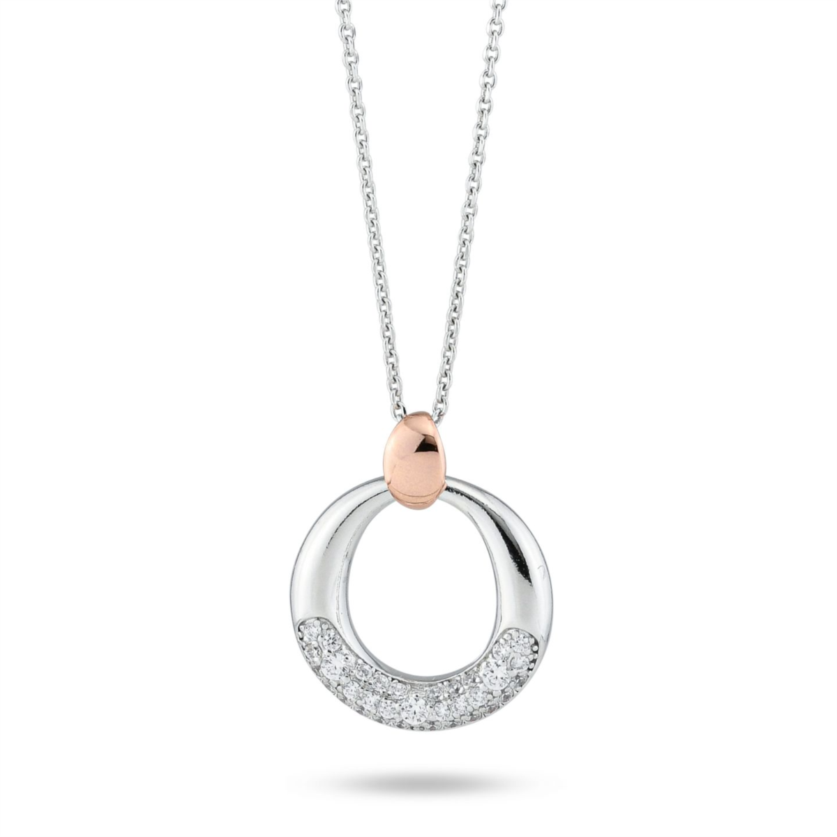 Collana donna boccadamo, GR899, collezione sophie, in argento con contromaglia placcata oro rosa e pendente circolare di pavè di zirconi, lunghezza 38cm estendibile fino a 43, 5cm