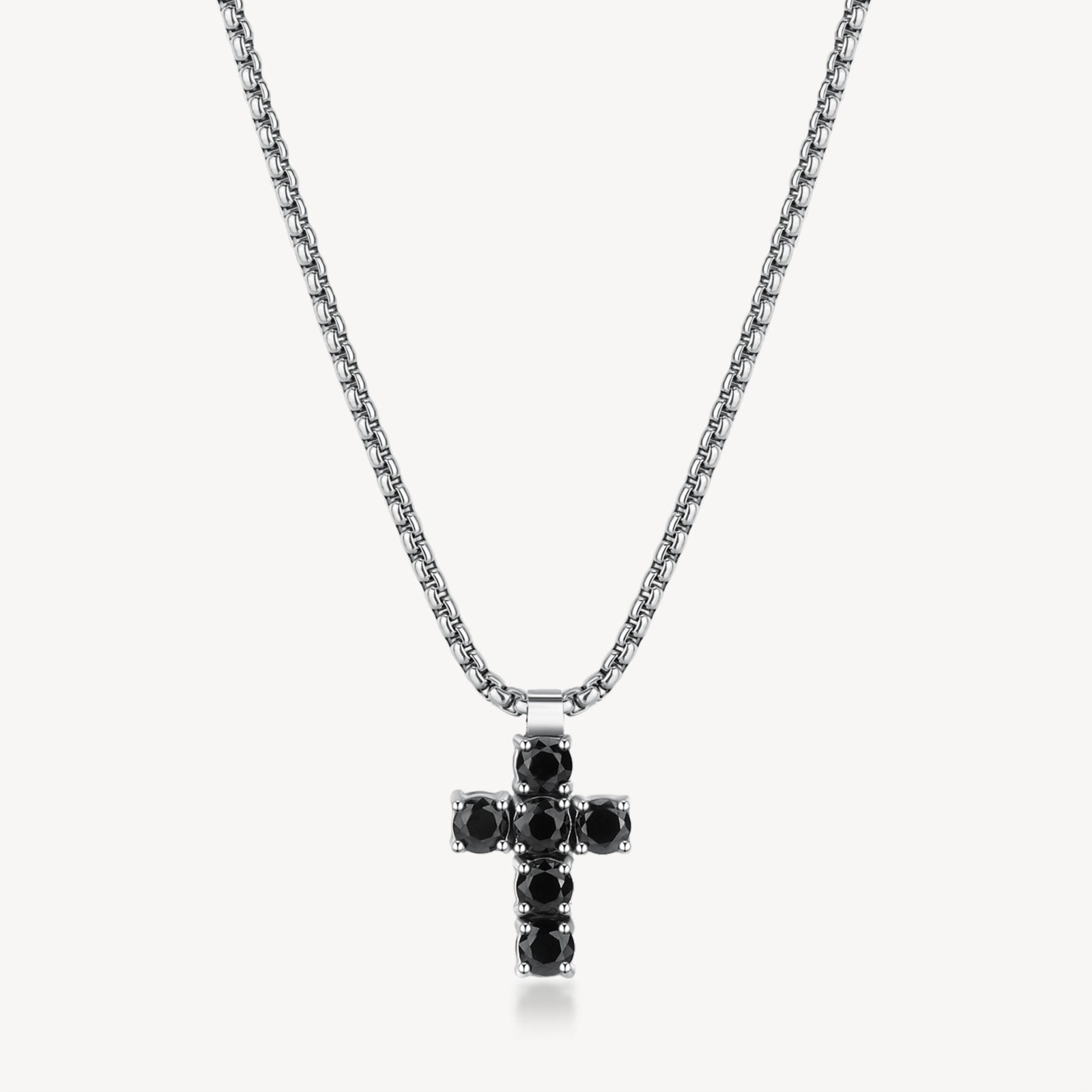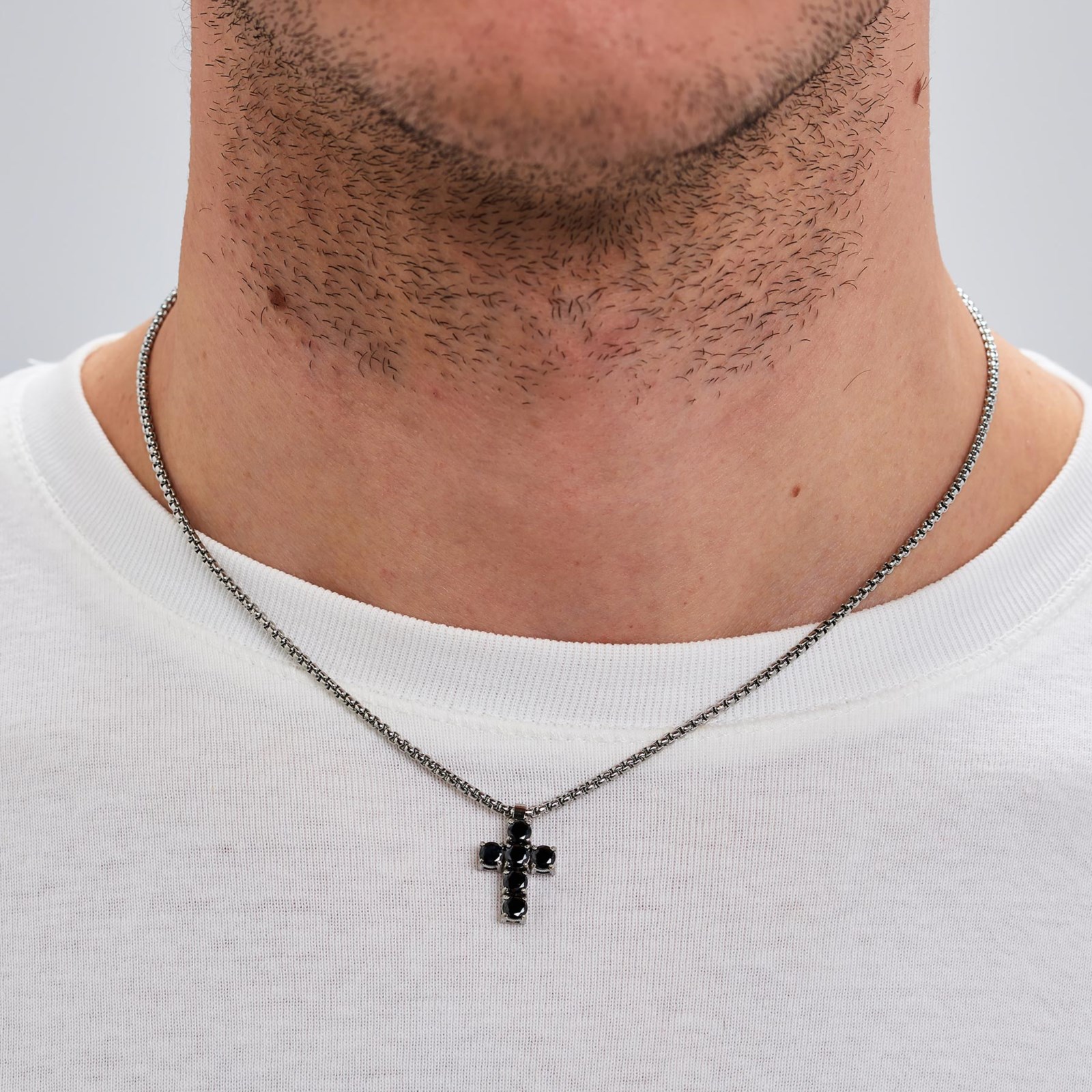 Collana uomo brosway, BVD03, collezione avantgarde, girocollo in acciaio 316L e finitura pvd colore rutenio, con pendente a forma di croce e cubic zirconia neri. lunghezza 49cm.