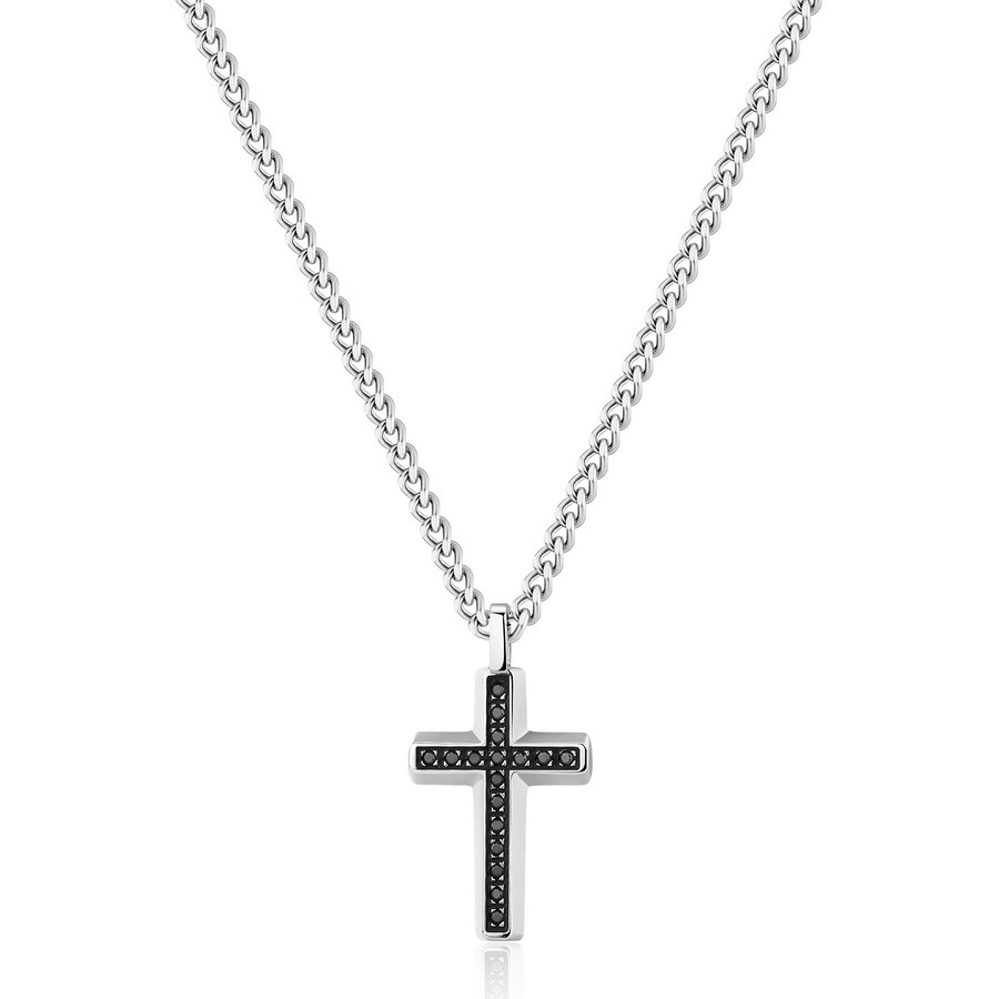 Collana uomo brosway, BBC01, collezione backliner, in acciaio con zirconi e smalto nero, lunghezza 70cm