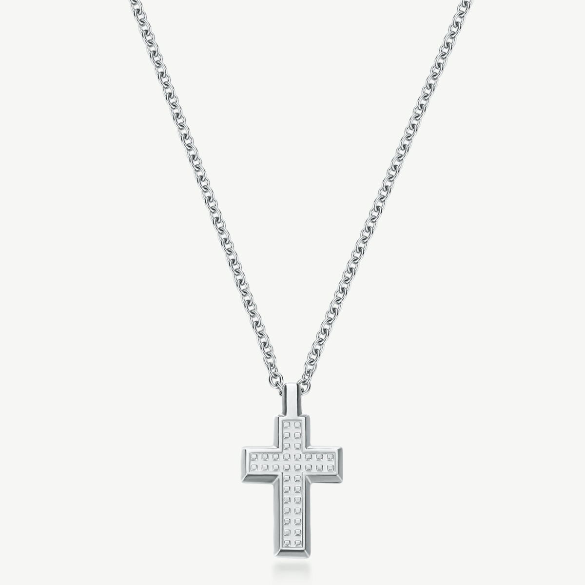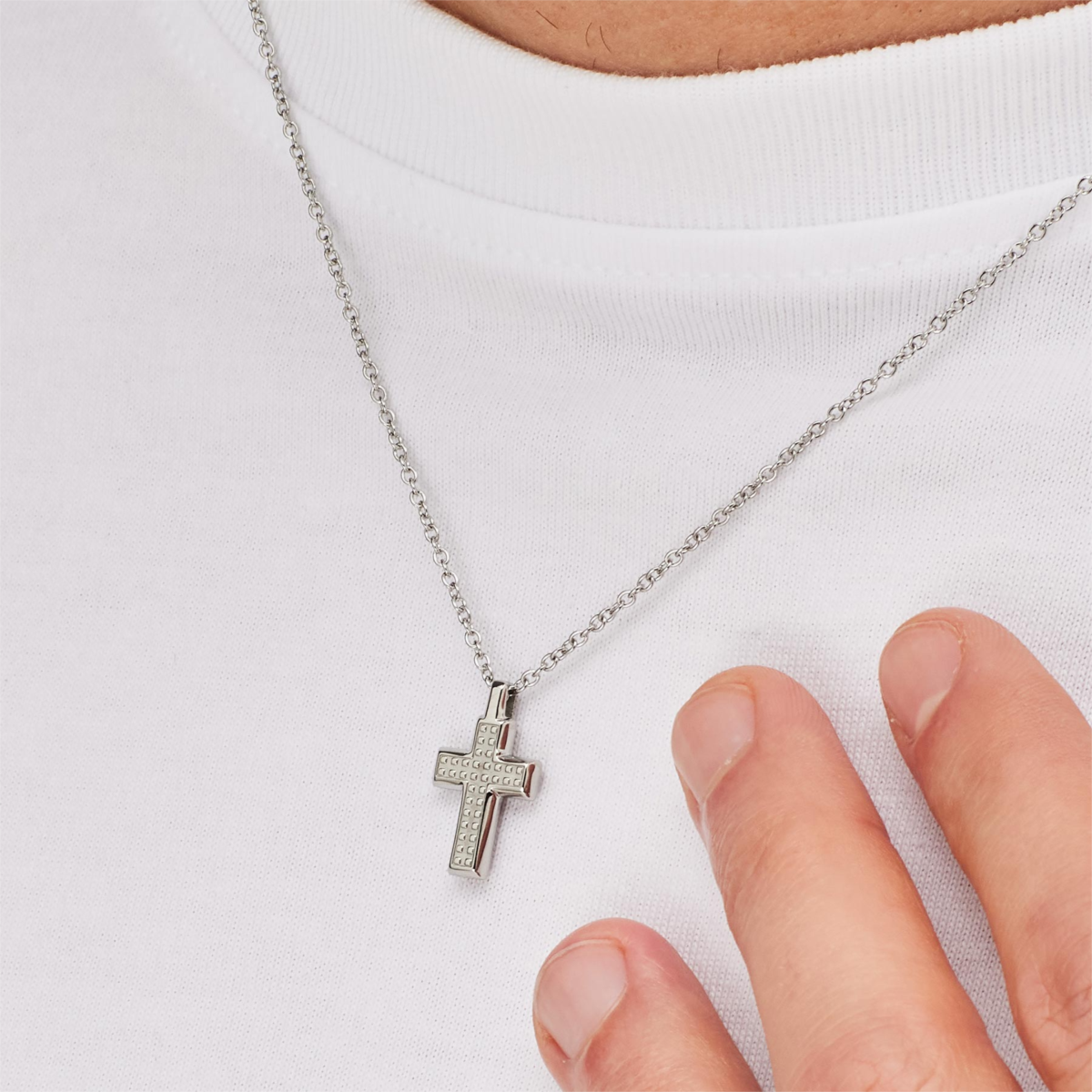Collana uomo brosway, BUL55, collezione bullet, in acciaio 316L lucido e sabbiato, con pendente a forma di croce. lunghezza 57cm.