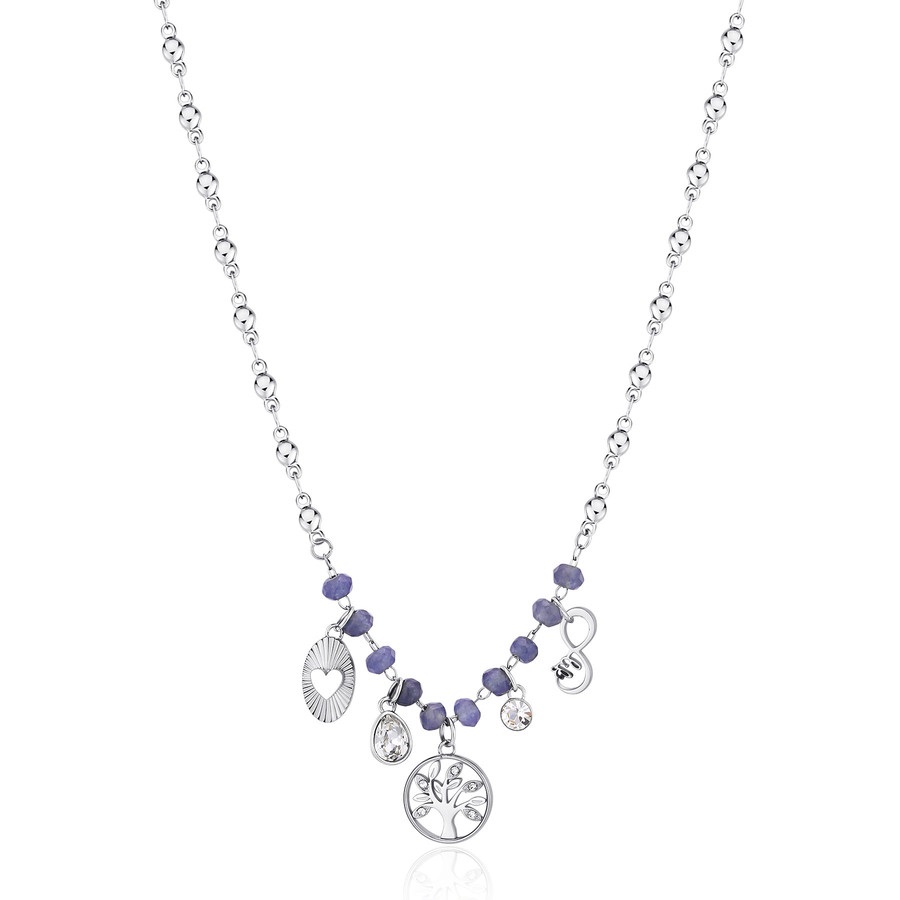 Collana donna brosway, BHKN085, collezione chakra, in acciaio con calcedonio viola e cristalli, lunghezza 48cm
