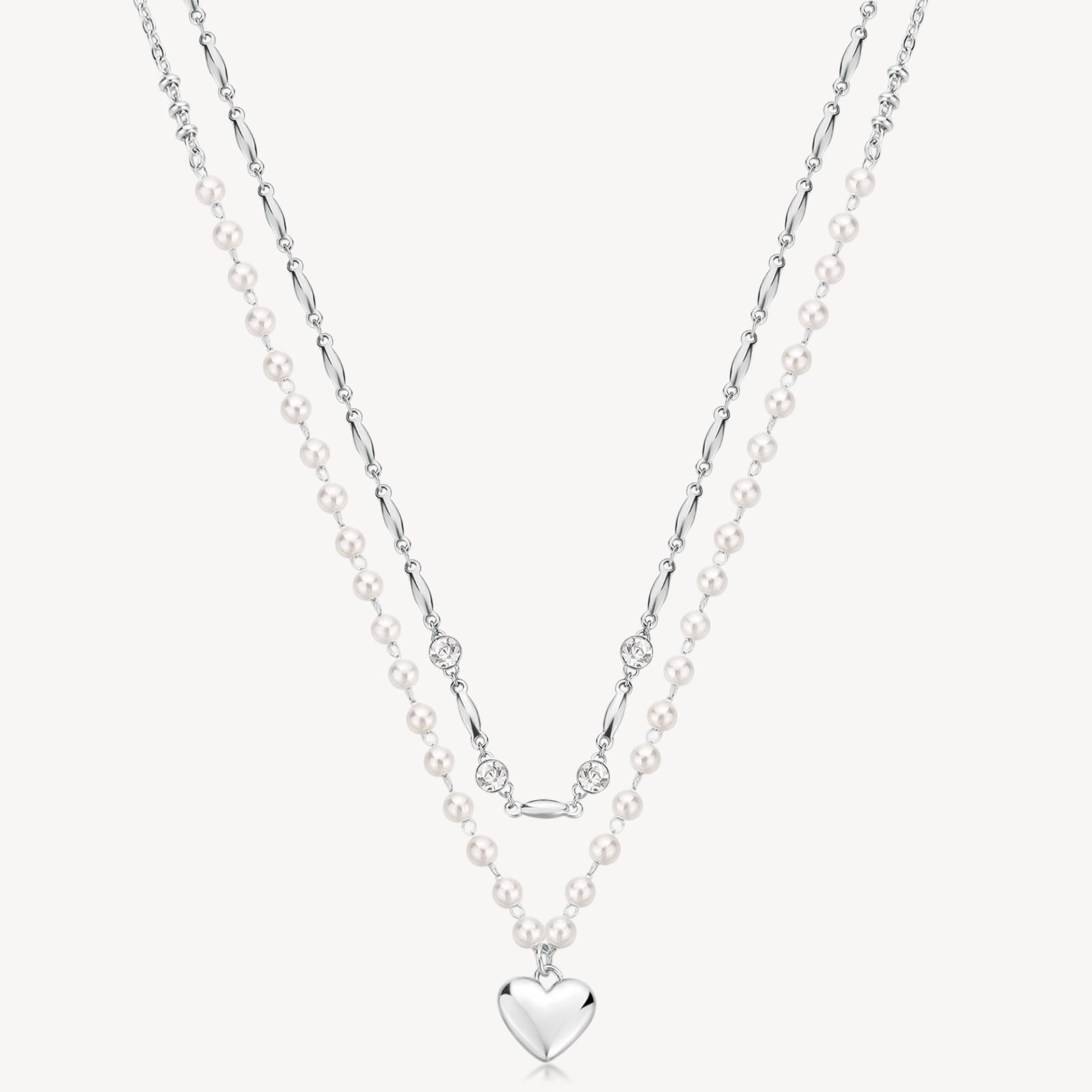 Collana donna brosway, BHKN131, collezione chakra, in acciaio 316L e perle di conchiglia, con pendente a forma di cuore e cristalli, misura 46cm