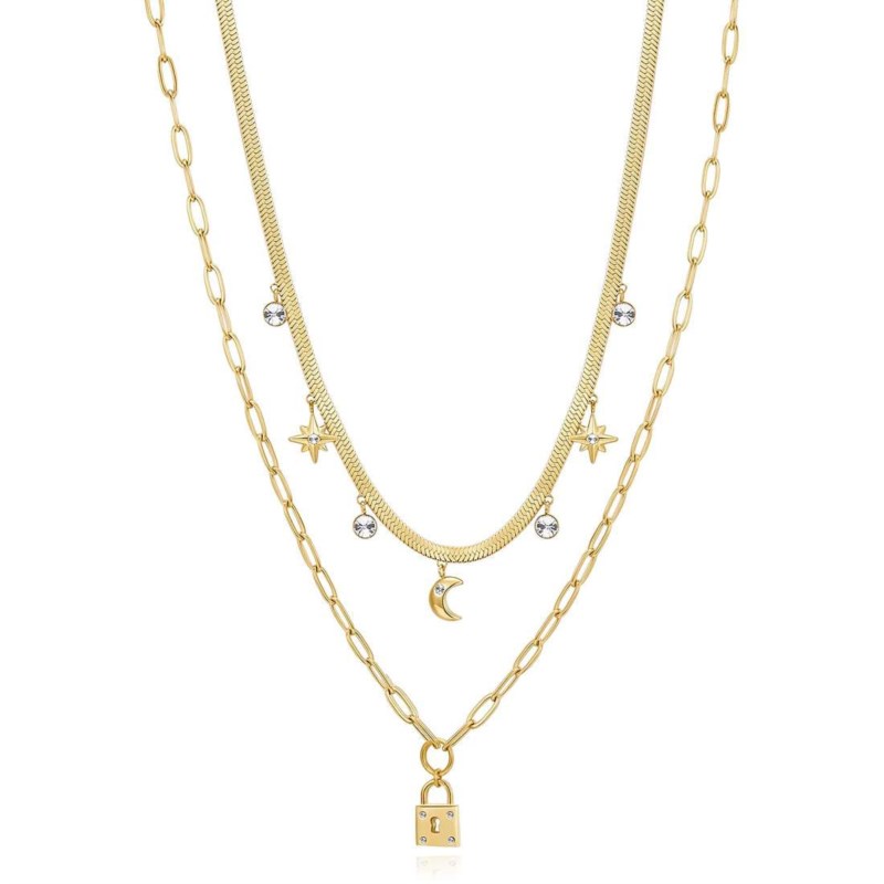 Collana donna Brosway, BAH48, collezione Chant, in acciaio dorato con cristalli, misura 530Mm