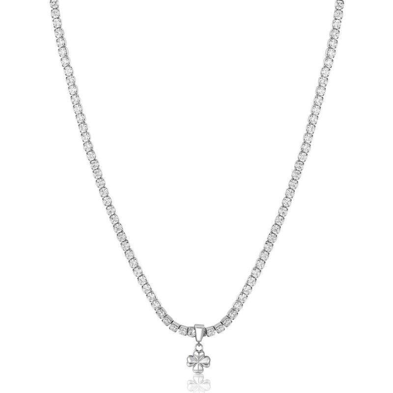Collana donna brosway, BEIN001, collezione desideri, in acciaio con zirconi, pendente a forma di quarifoglio, lunghezza collana 43cm