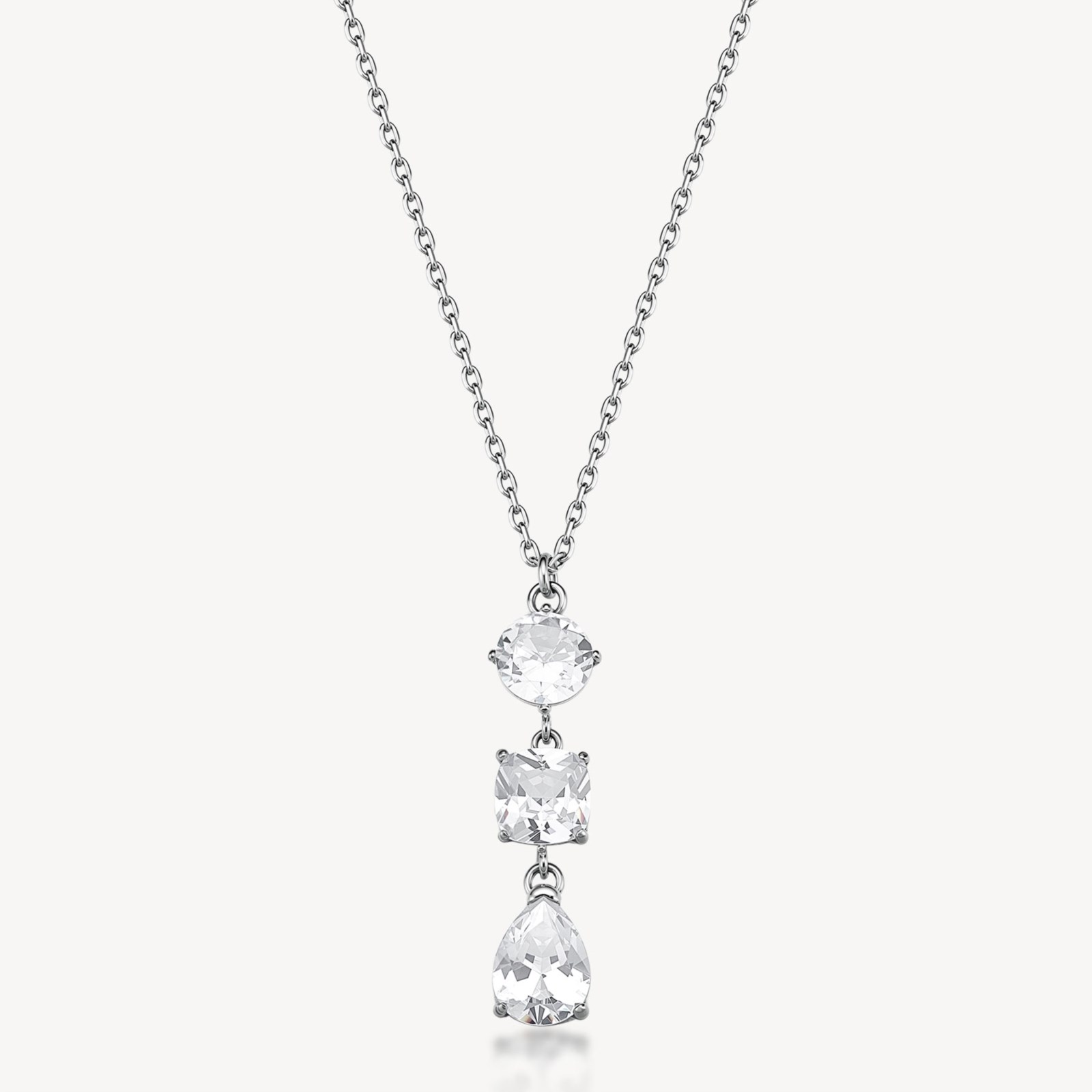 Collana donna brosway, BIG01, collezione dreaming, girocollo in acciaio 316L e pendente con round, cushion e pear cubic zirconia. lunghezza 45cm.