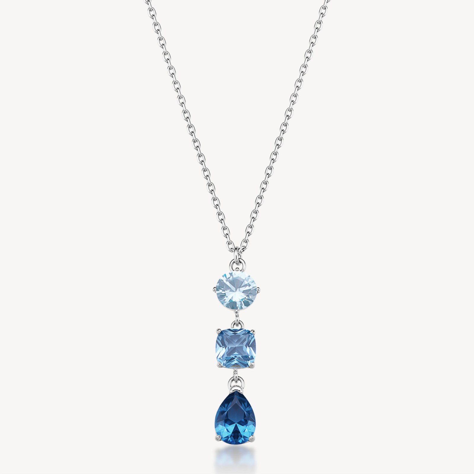 Collana donna brosway, BIG02, collezione dreaming, girocollo in acciaio 316L e pendente con round, cushion e pear cubic zirconia colore light sapphire. lunghezza 45cm.