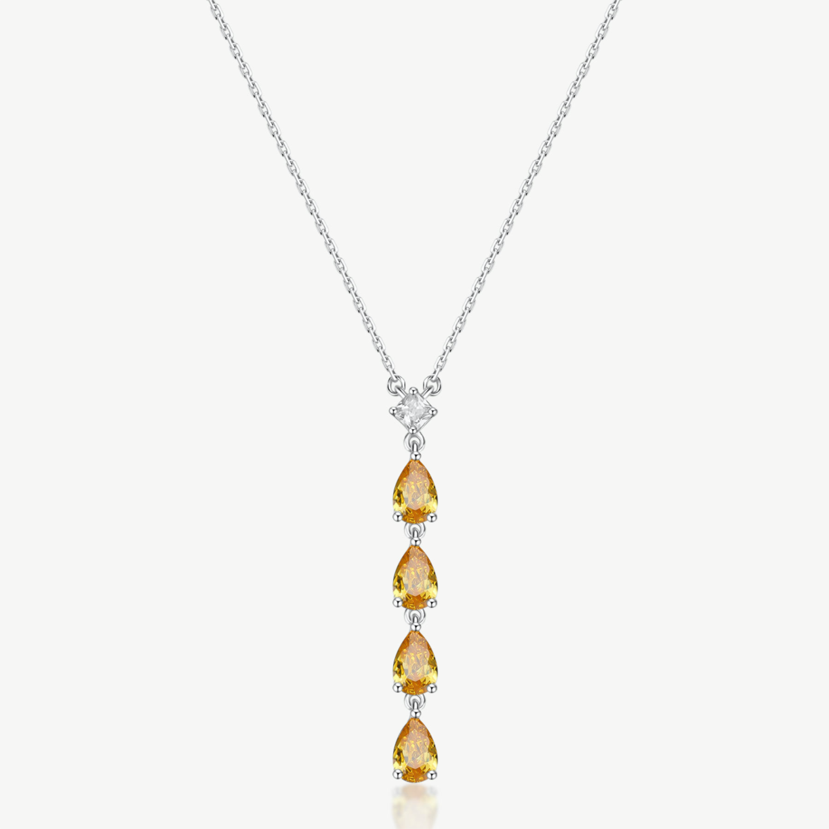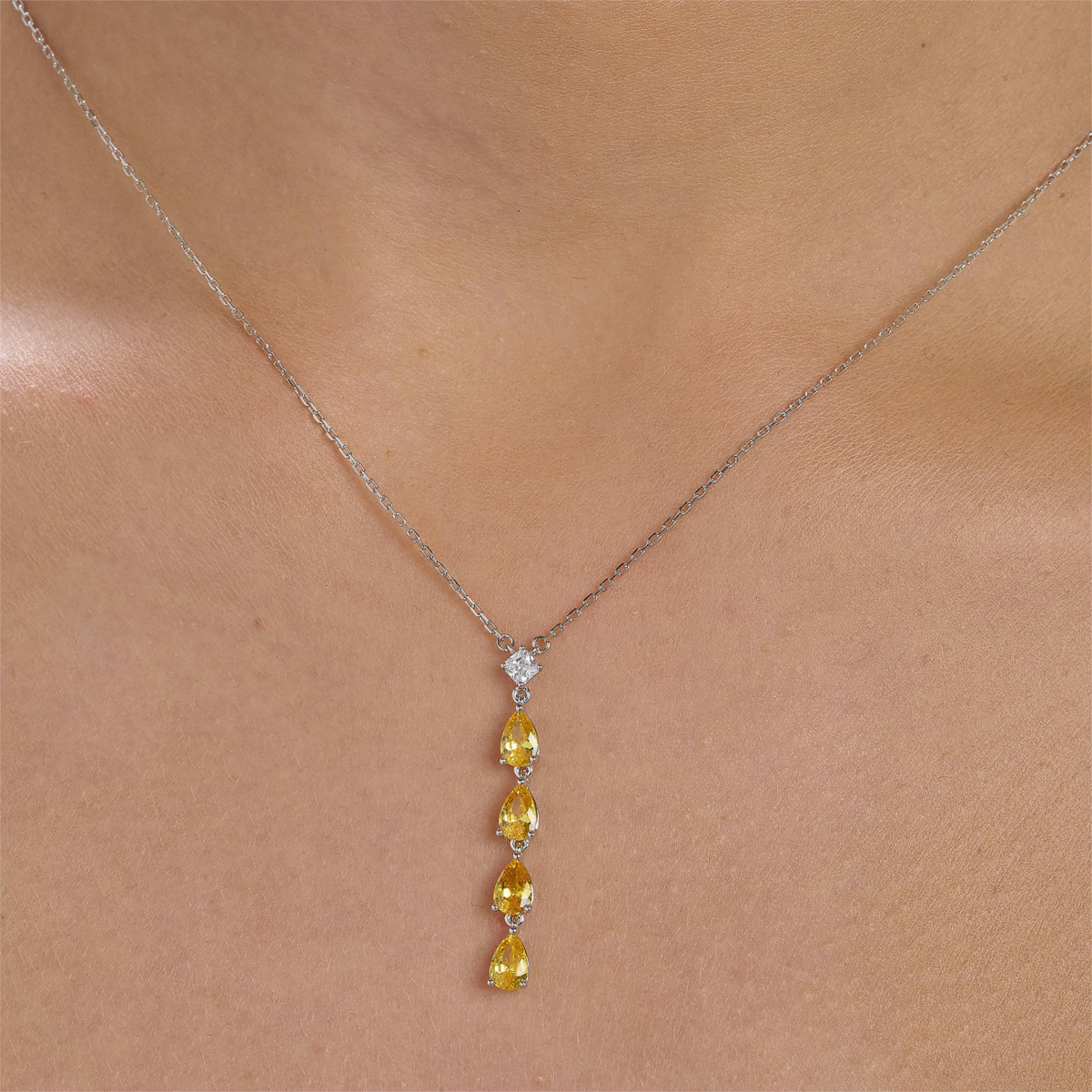 Collana donna brosway, FEY98, collezione fancy, in argento rodiato 925‰ e pendente con square cubic zirconia e pear cubic zirconia colore golden yellow. lunghezza 45cm.
