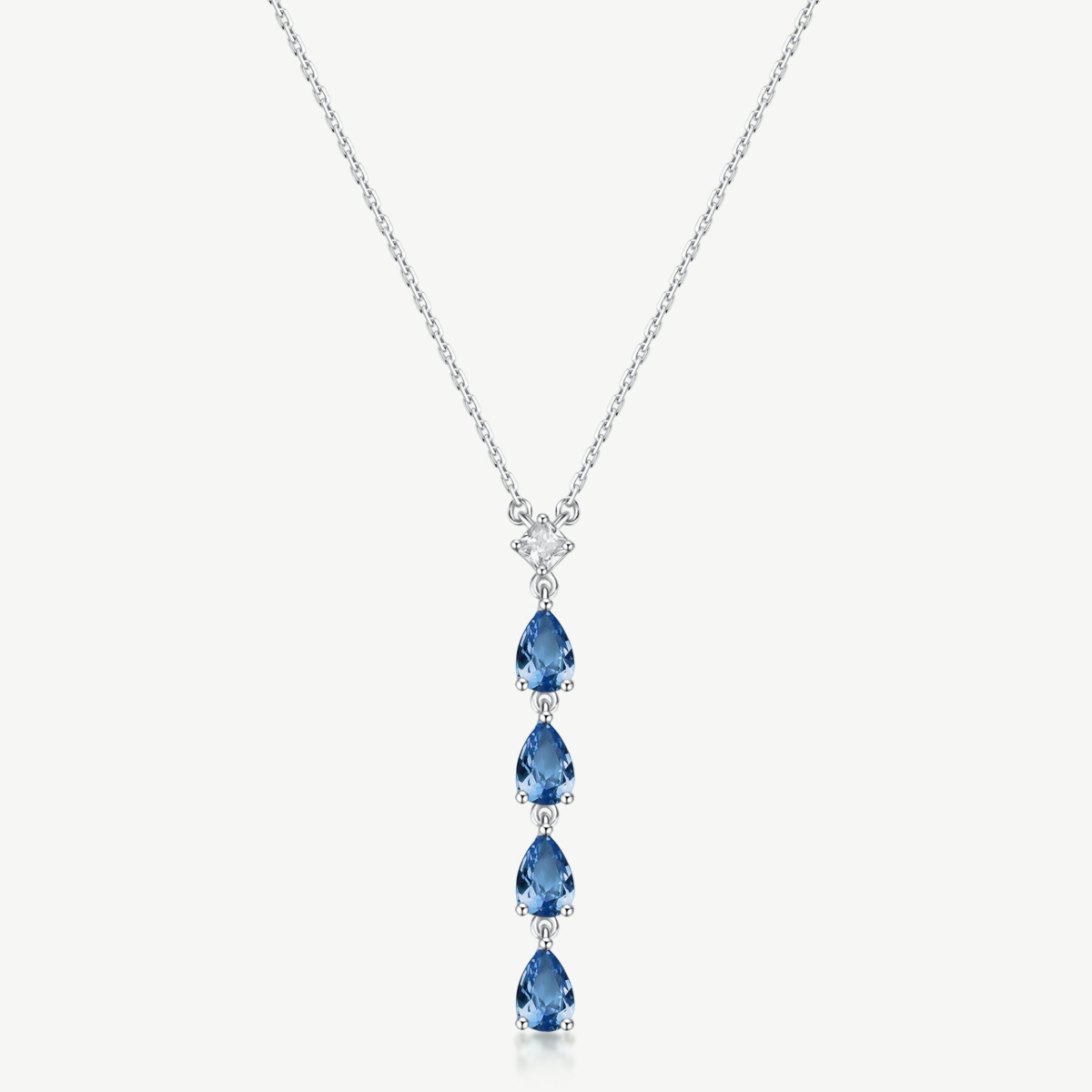 Collana donna brosway, FFB110, collezione fancy, in argento rodiato 925‰ e pendente con square cubic zirconia e pear cubic zirconia colore sapphire. lunghezza 45cm