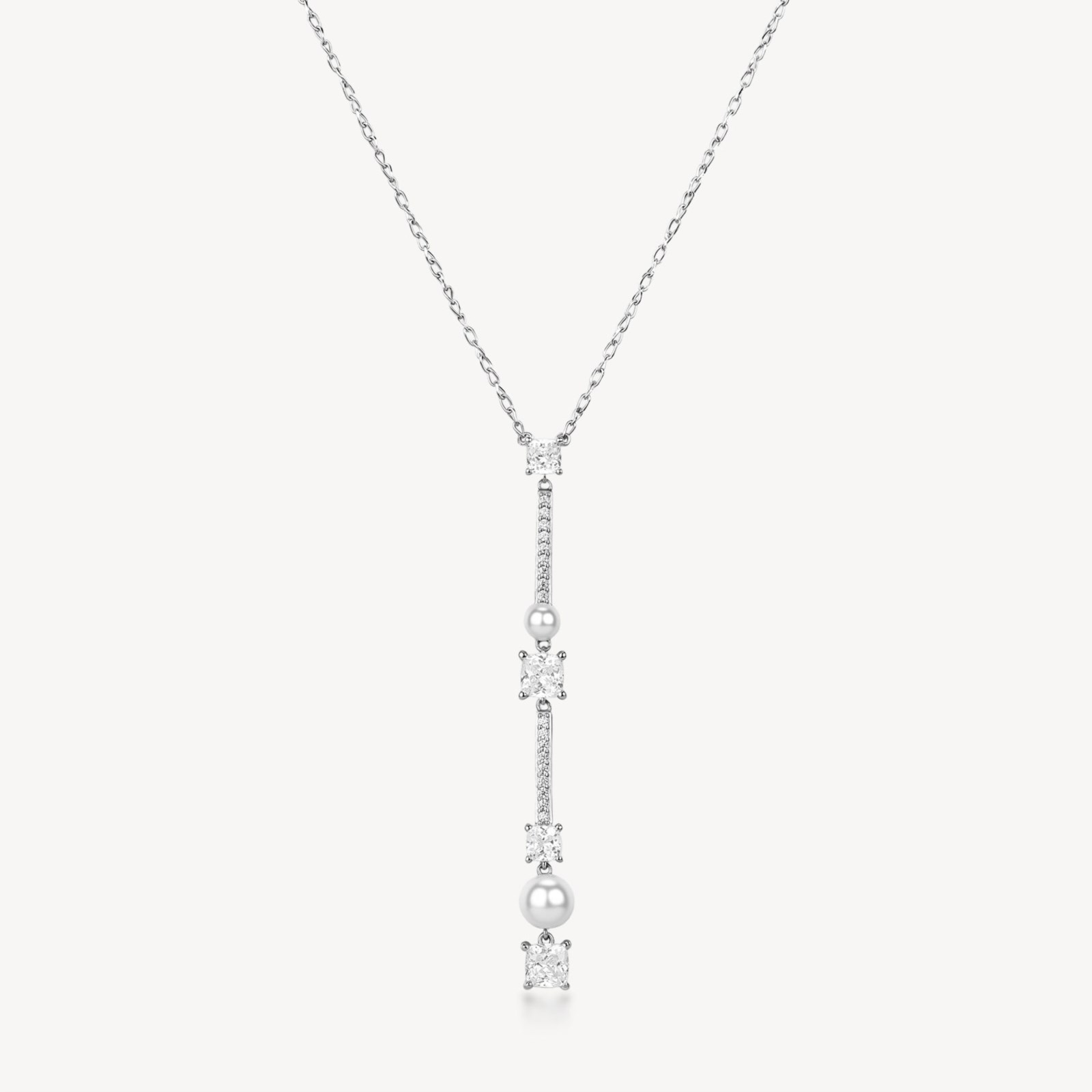 Collana donna brosway, FIW169, collezione fancy, in argento rodiato 925‰ con perle di conchiglia e cubic zirconia. lunghezza 42cm.