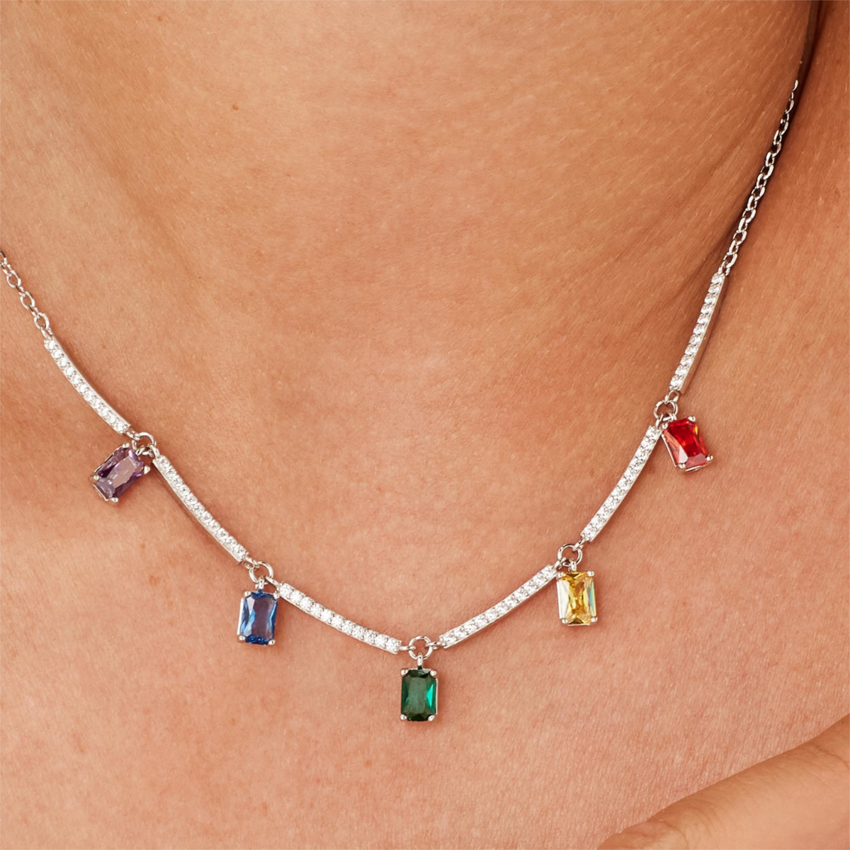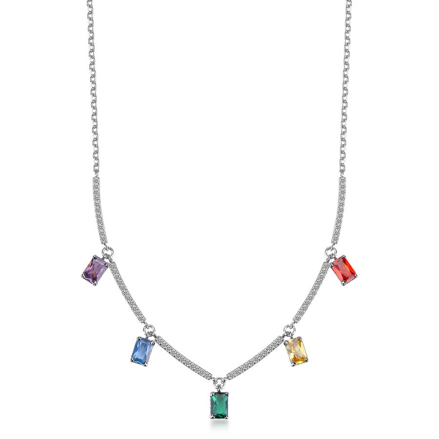 Collana donna brosway, FJR03, collezione fancy, in argento rodiato 925‰ e cubic zirconia multicolore, lunghezza 45cm