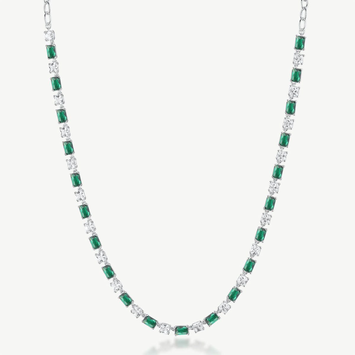 Collana donna brosway, FLG26, collezione fancy, in argento rodiato 925‰ con cubic zirconia chiari e colore emerald.