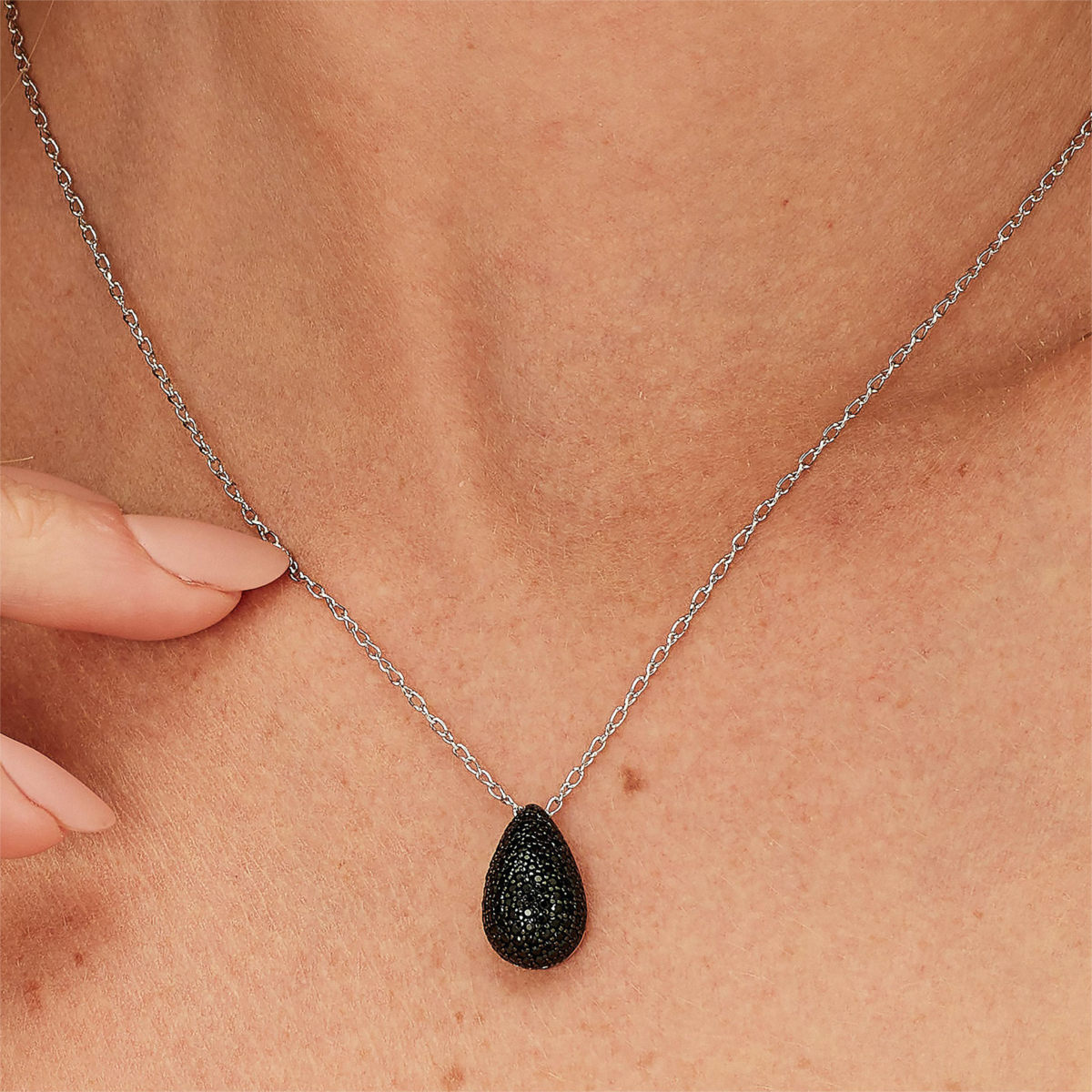 Collana donna brosway, FMB121, collezione fancy, in argento rodiato 925‰ e pendente con galvanica colore rutenio e cubic zirconia neri. lunghezza 44cm.