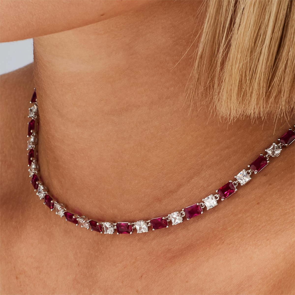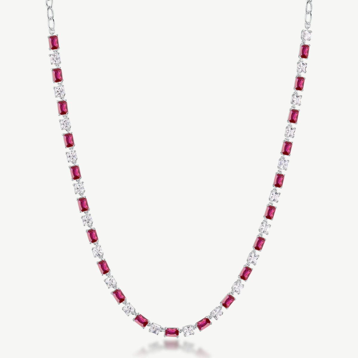Collana donna brosway, FPR32, collezione fancy, in argento rodiato 925‰ con cubic zirconia chiari e colore ruby.