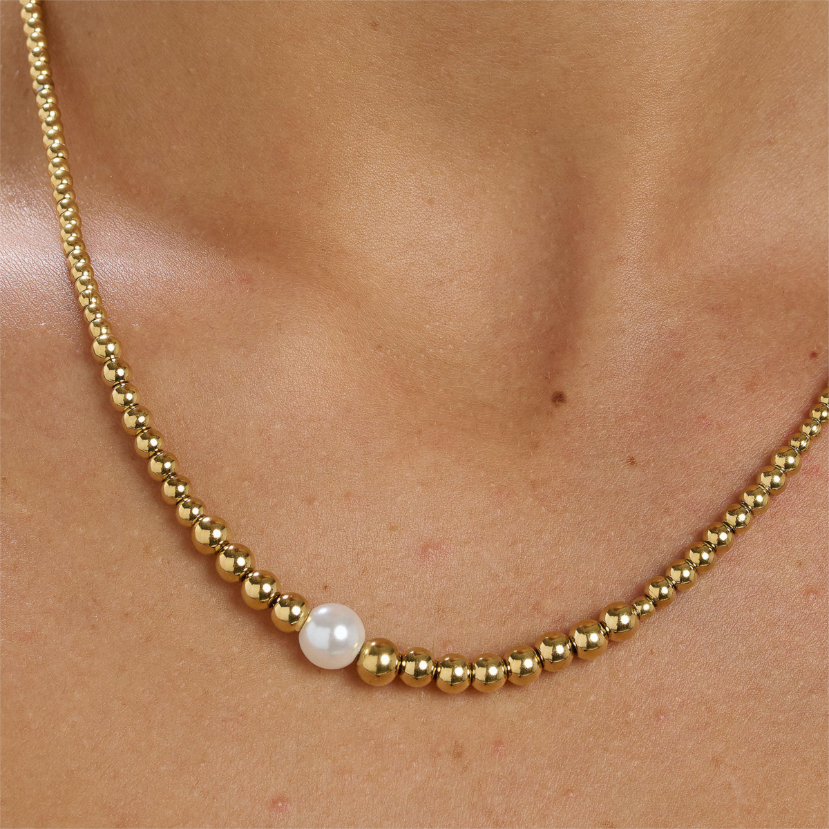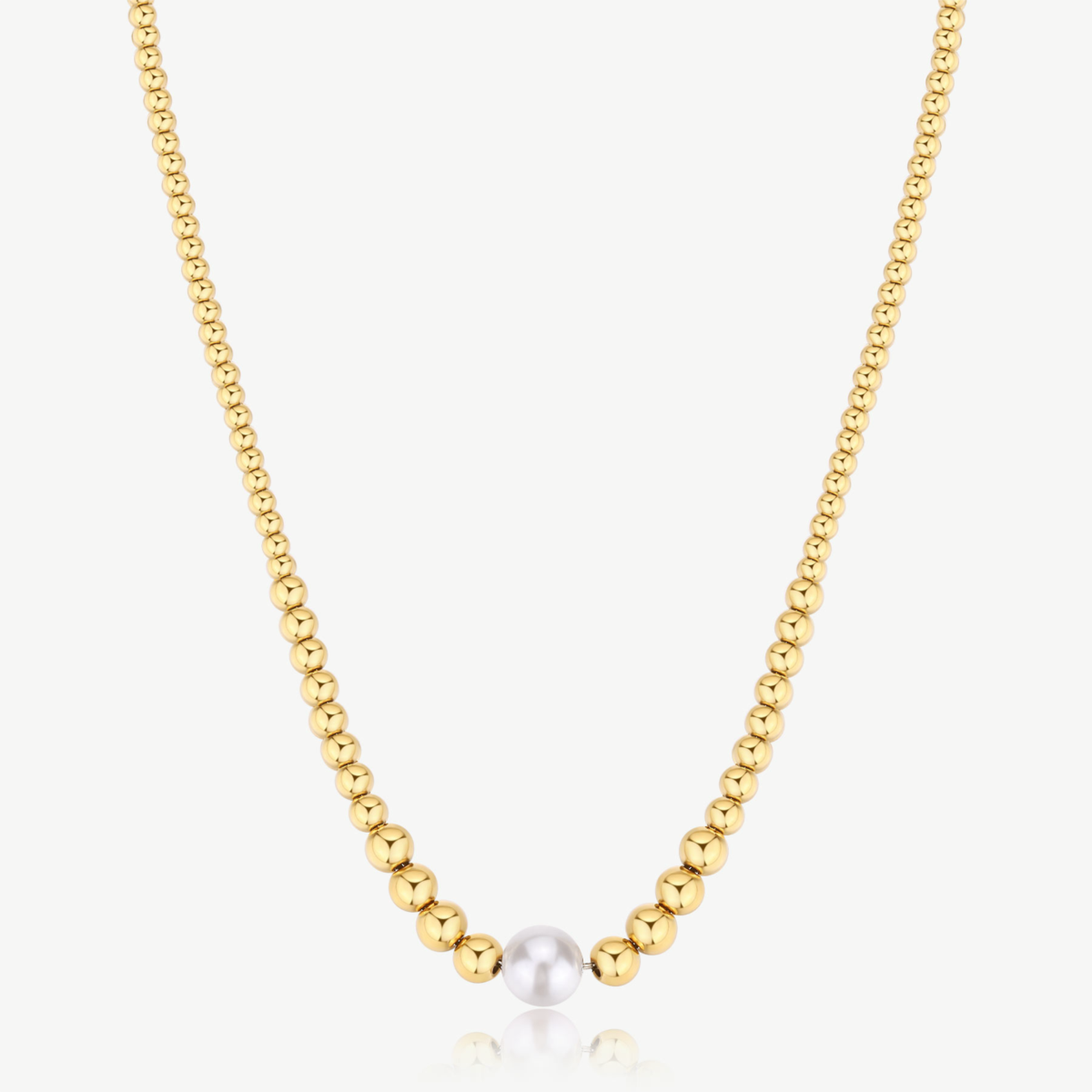 Collana donna brosway, BPC04, collezione perfect, a sfere in acciaio dorato con perla di conchiglia. lunghezza 50cm