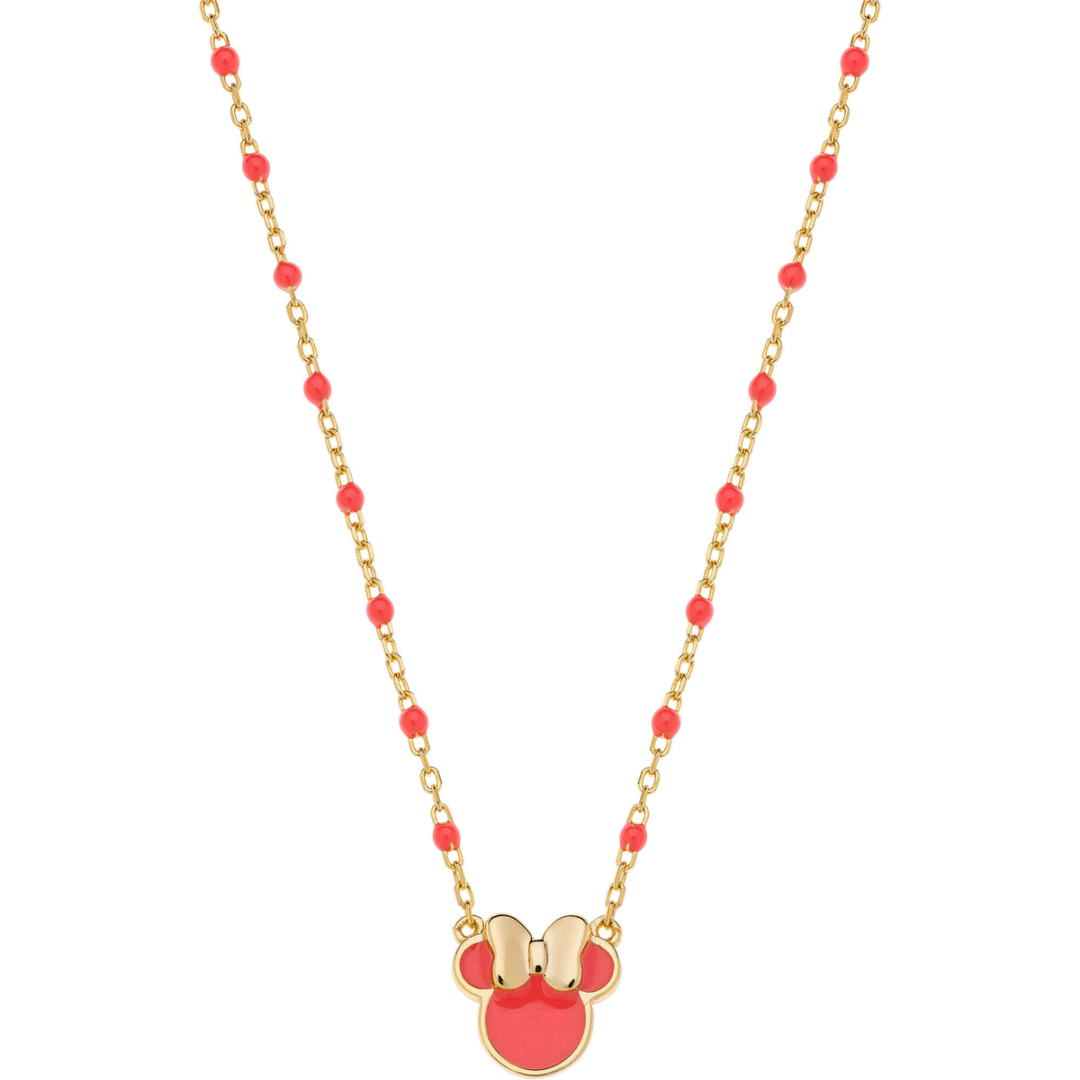 Collana bambina disney, NS00056YL-157, collezione mickey mouse, in argento 925 dorato e smalto rosso, lunghezza 37cm+3cm