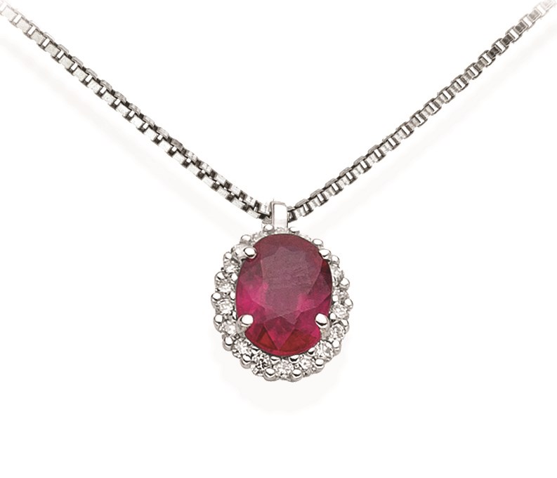 Collana donna donnaoro, DHPR7877.006, collezione ARCOBALENO, in oro bianco 18kt con diamanti 0, 06ct e rubino 0, 55ct