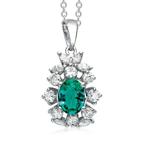 Collana donna donna oro, DCPE3632.060, collezione ARCOBALENO, in oro bianco 18k con diamanti e smeraldo