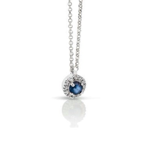 Collana donna donna oro, DCPZ3027.009, collezione ARCOBALENO, in oro bianco 18k con diamanti e zaffiro